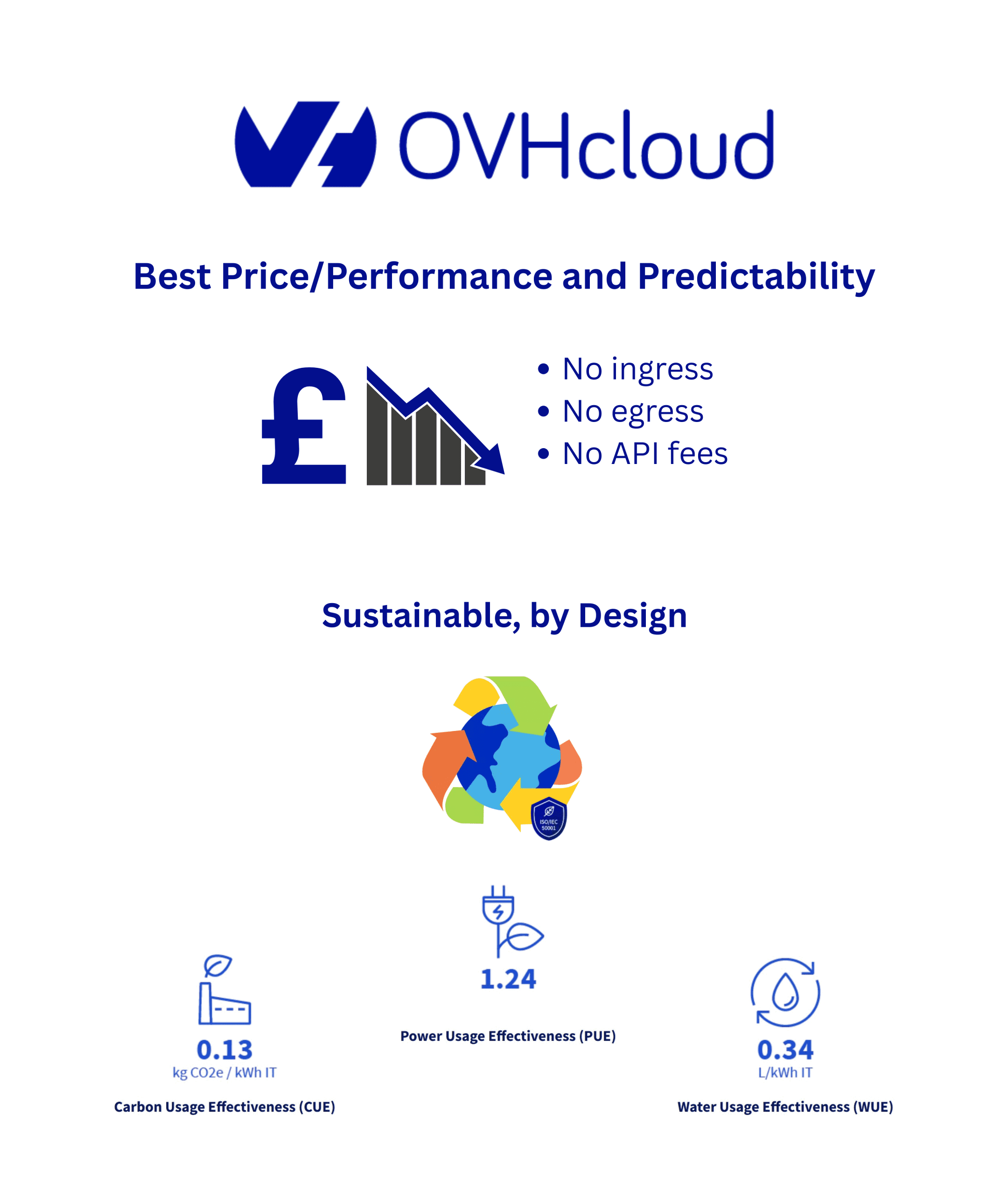 OVHcloud pricing is transparent and predictable, avoiding hidden fees like ingress and egress, allowing for accurate budget forecasting.